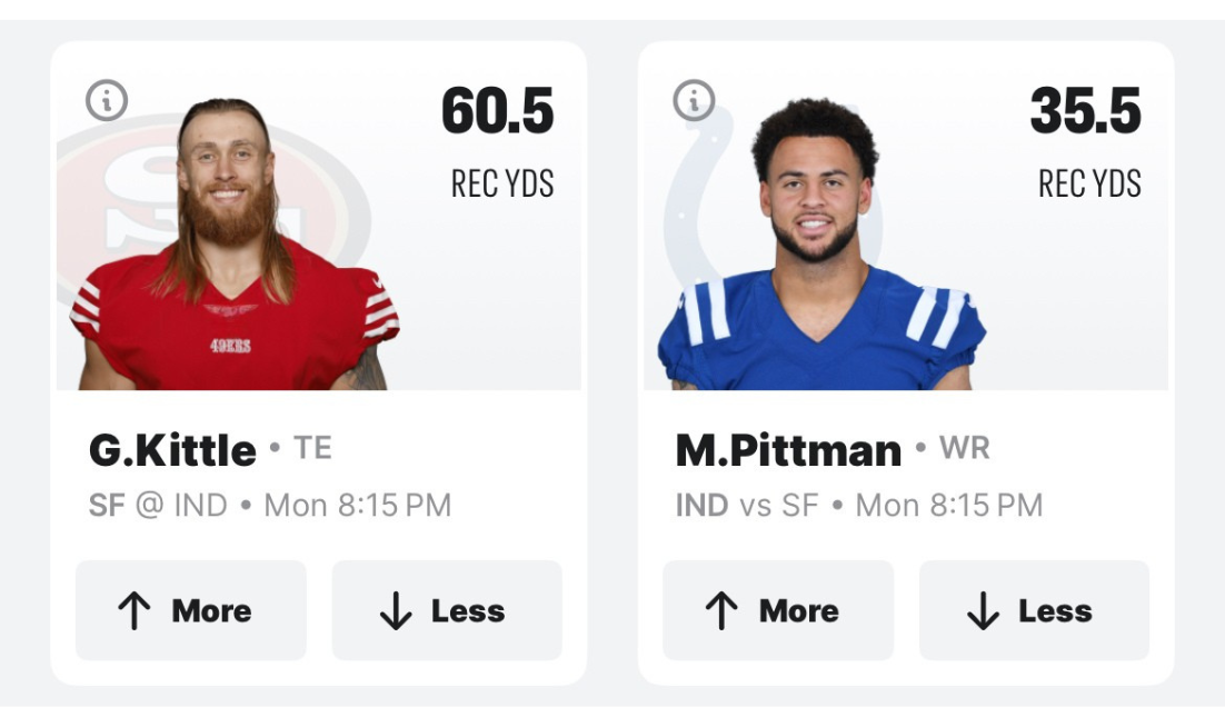 Receiving Yards Props for 49ers vs Colts