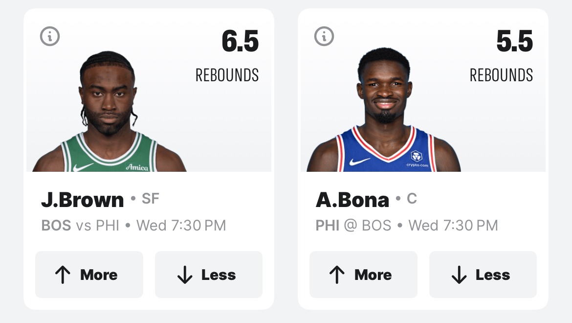 Brown contributes on the glass but often defers to Boston’s bigs. With Porziņģis and Horford cleaning up the boards, “Less” is the lean here.