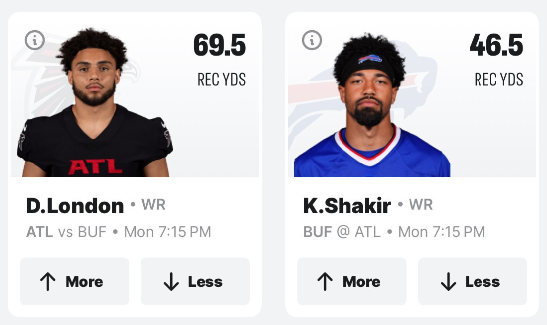 London remains the clear WR1 in Atlanta’s offense and has developed quick chemistry with Penix. Against a Buffalo defense that allows chunk plays, “More” is the move.