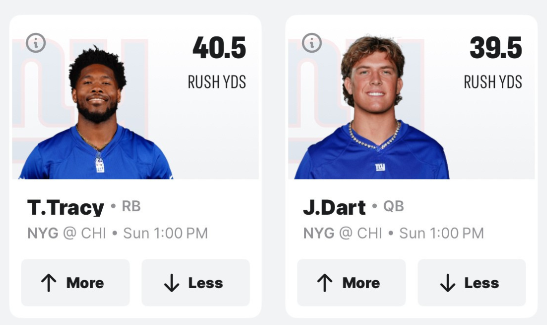 Tracy’s versatility out of the backfield gives him sneaky value in the passing game. Chicago’s linebackers have allowed plenty of yardage to RBs in space — making “More” a smart call for one of the underrated Giants vs Bears props.