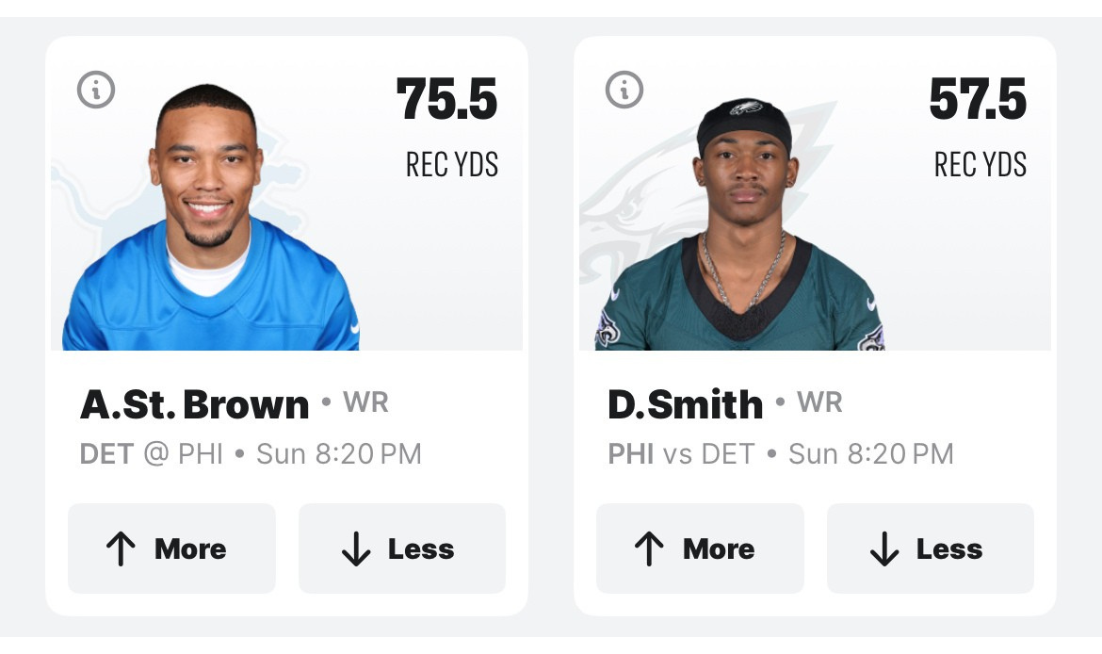 St. Brown remains Goff’s most trusted target and the engine of Detroit’s passing game. He’s cleared this number regularly, and the Eagles have had trouble stopping high-volume WR1s. “More” is one of the strongest Lions vs Eagles best player props on the slate.