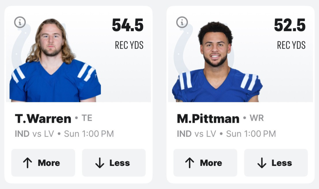 The Indianapolis Colts take on the Las Vegas Raiders in a key AFC matchup Sunday afternoon. With Daniel Jones under center for Indy and Jonathan Taylor back as the workhorse in the backfield, this game offers plenty of intriguing Colts vs Raiders player props to target. QuickPicks is the perfect way to test your football knowledge in head-to-head stat line contests.
