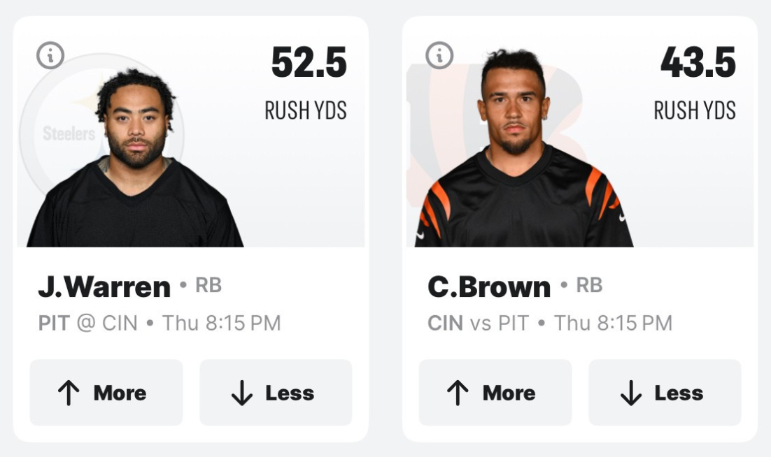 Rodgers has been sharp managing Pittsburgh’s offense, and Cincinnati’s secondary has been hit or miss. With play-action opportunities opening up, “More” feels like the side to play.