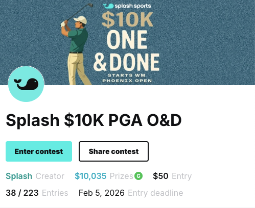 Additional Golf One and Done contests are available in the Splash Sports lobby, with new options launching throughout the season.